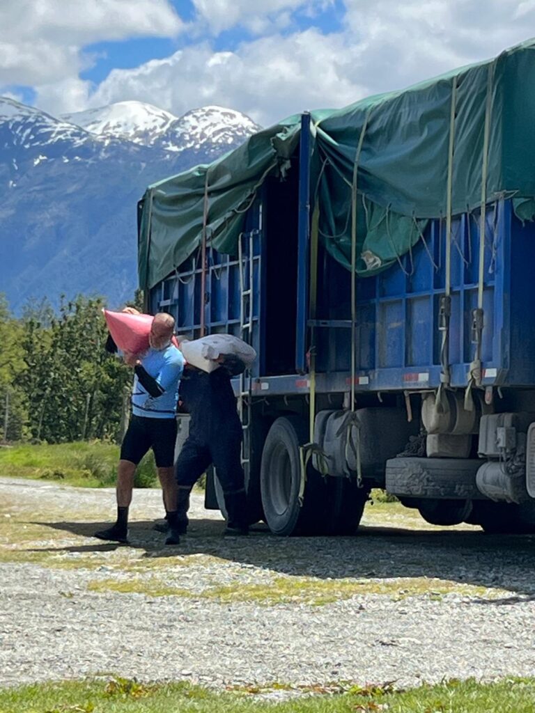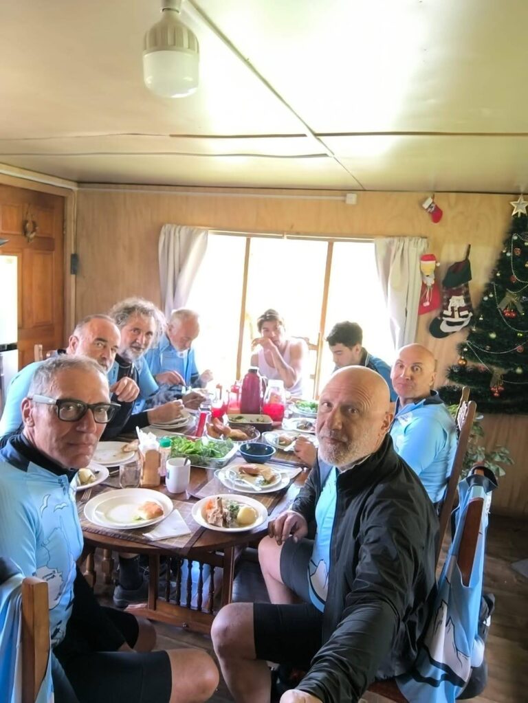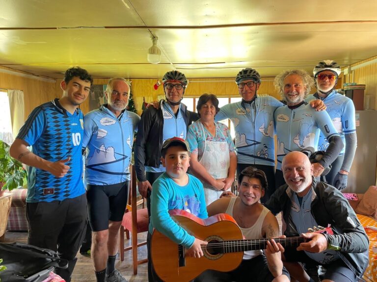 One unforgettable moment was our stop after 80 km to eat at a señora’s house along the Carretera Austral. She welcomed us into her living room, where she set the table for the six of us cyclists and our two young Chilean drivers, Sebastián and Javier, who have become an integral part of the group with their friendliness and charm. They often try to fish for salmon in the streams during the journey, but so far, they haven’t caught a single one.