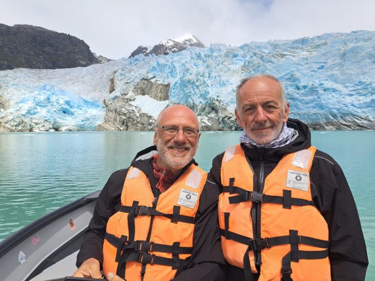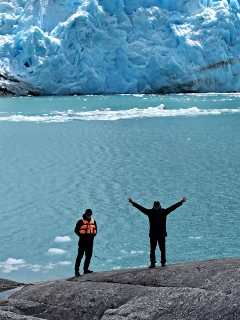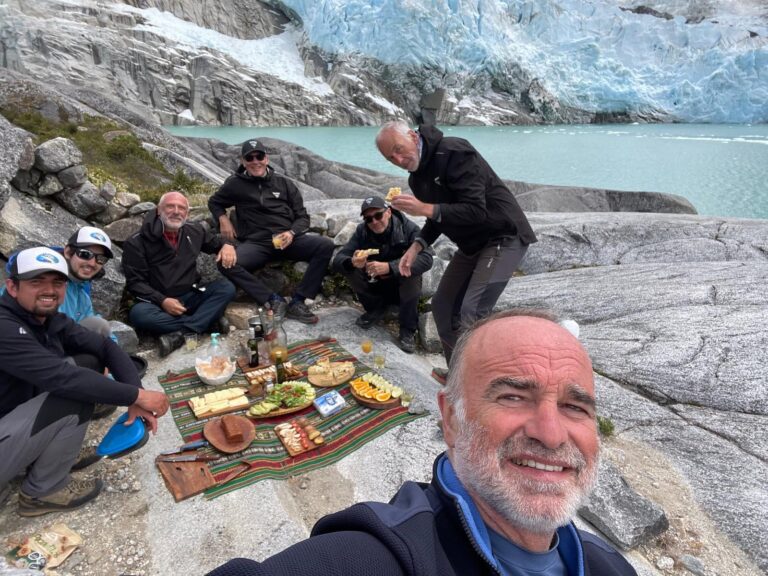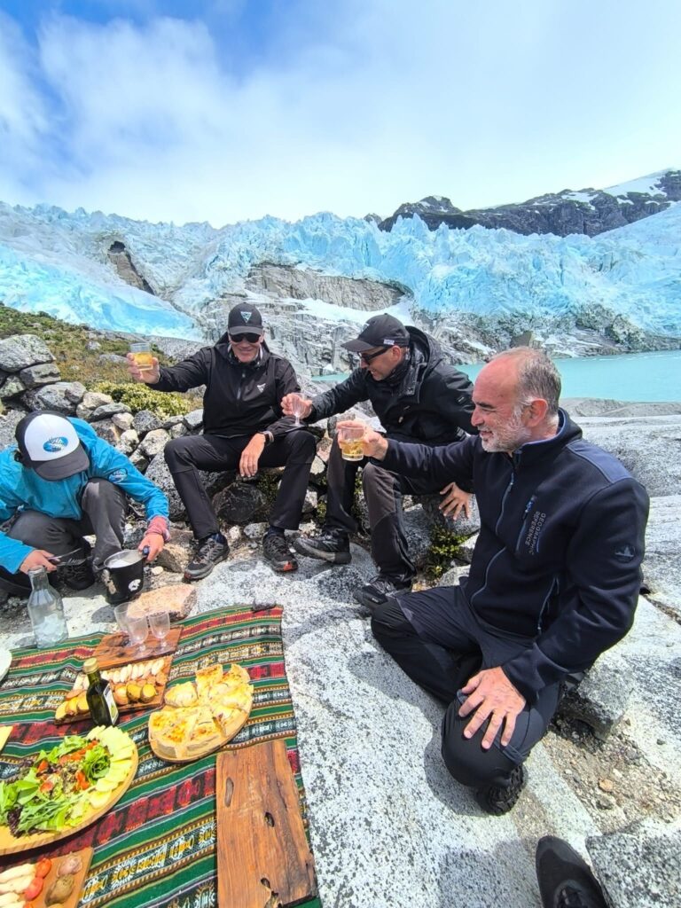 Today was a significant day, especially for Alberto, as it was his birthday. Probably, among all his 63 birthdays, this will be one of the most unforgettable. After all, it’s not every day you celebrate with a toast of whiskey and millennia-old ice on the “ventisquero” of the León Glacier.