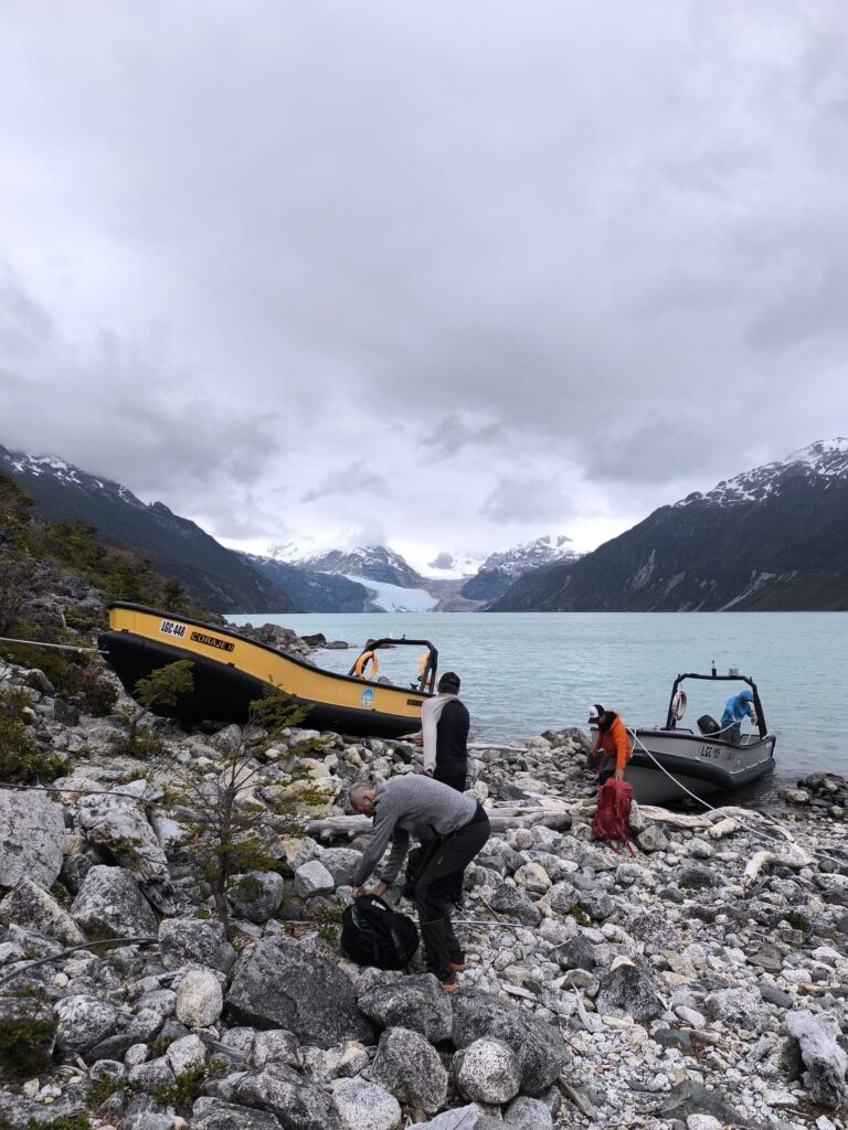 At 7:15 in the morning, a van picked us up from our cabin and took us to the León Valley. From there, after an additional three hours of hiking, we reached Lake León, where a boat (“bote” in Spanish) awaited us. The boat took us to the base of an 800-meter-long and 60-meter-high ice wall.
